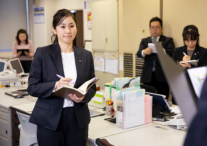 私が現在所属している支社は、9つの営業部を統括しています。営業職員が大切なお客様からお預かりした書類やデータの点検、営業職員の活動支援など、営業現場を支える部署となります。