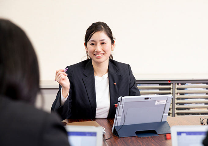 支社での業務は多岐にわたり、いくつかのチームに分かれて仕事をしています。私は人材育成チームの一員として日々営業職員の総務関係(人事・給与・勤務管理など)や、これから営業職員として働く方の入社手続きなどを担当しています。
