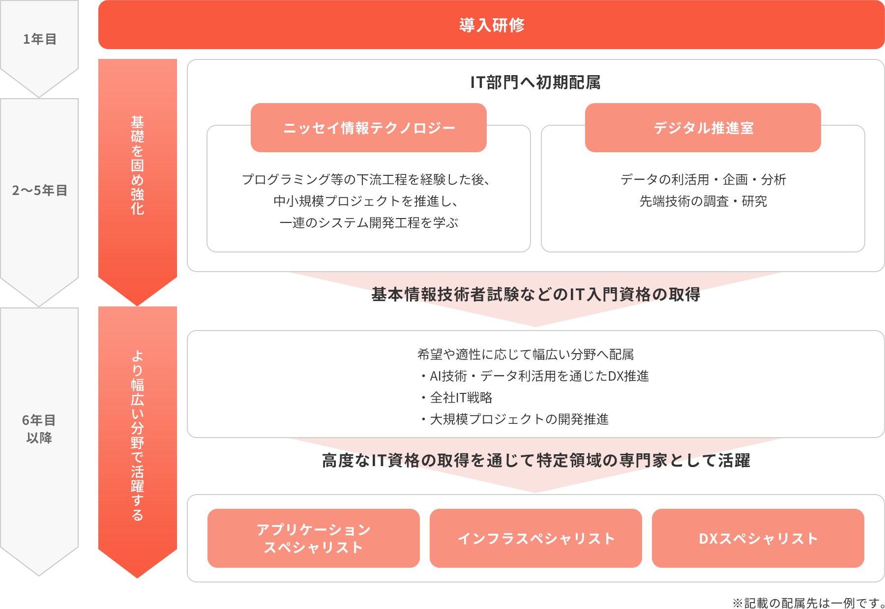 IT認定制度という年次ごとに定められている所定の資格取得を通じて、キャリアを主体的を決めることができる制度があります。